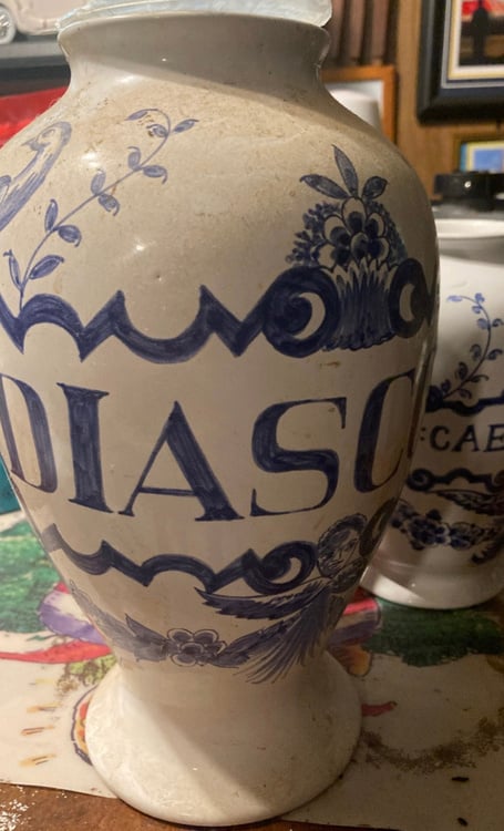 1. Diascord: An apothecary medicinal jar that dates back to the early 1900s. This jar was used for storing roots and berries for tea and tinctures, commonly used in African American tea culture for their health benefits. The jar symbolizes the continuity of herbal knowledge passed down through generations of Dr. Nettles’ family, from her great uncle to her father, and now to her.