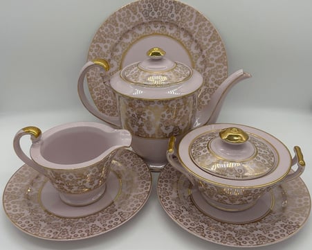 The Yoshino Bone China Tea Set, adorned with pink floral designs, represents the elegance and refinement of tea culture within African American elite circles. Bone China was highly coveted for its durability and delicate appearance. The Yoshino tea set, produced from the late 19th to mid-20th century, was particularly popular among affluent African Americans, symbolizing sophistication and cultural pride.