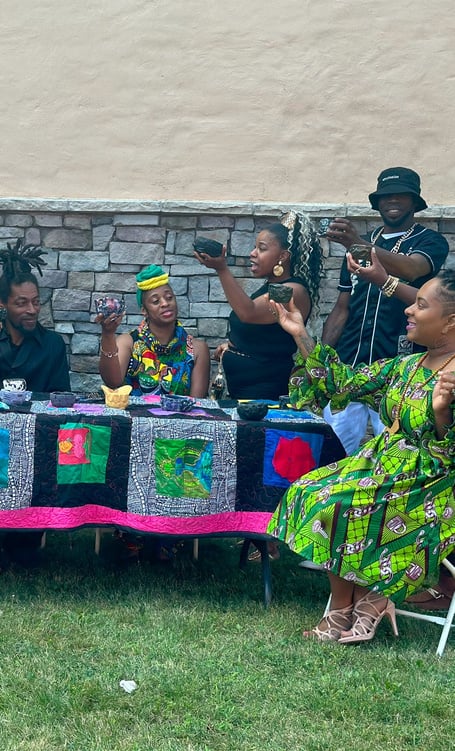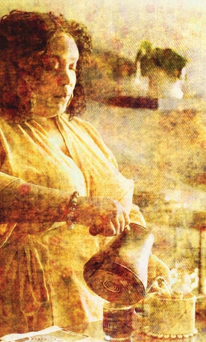 Welcome to the Black Tea Rhapsody exhibition. This multimedia art exhibition is an homage to African American tea culture, celebrating the history, traditions, and stories that have shaped this vibrant community. The exhibition covers themes such as spirit, medicine and wellness, Black men in tea spaces, and community.