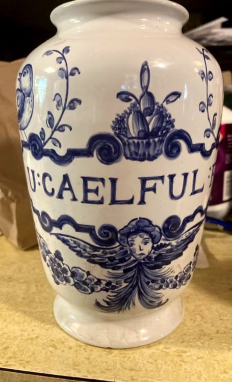 2. Comfrey (Symphytum officinale): Another artifact on loan from Dr. Nettles’ private collection, this vessel was used for storing comfrey roots, an ingredient in medicinal teas for treating various ailments. Comfrey has been valued for its healing properties, particularly for wounds, inflammation, and broken bones.