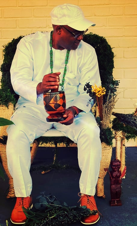 Similarly, “The Babalawo” by Herman Isreal Spencer (2023) features Baba Todd, who utilizes herbal teas and spiritual baths in his work. This image underscores the role of tea in Ifa divination and other African spiritual practices, illustrating how these traditions have adapted and thrived over centuries.
