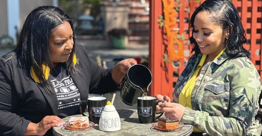 Latonia Cokely, owner of Adjourn Tea House, plays a key role in the revival of African American tea culture. Influenced by her grandmother’s tea traditions, Cokely combines her professional background with her love for tea to create a space offering culturally significant blends. The photo “Adjourn (2022)” was photographed by Cokely and digitally edited by Rolanda JW Spencer. Cokely emphasizes education and community through regular tea tastings and workshops.