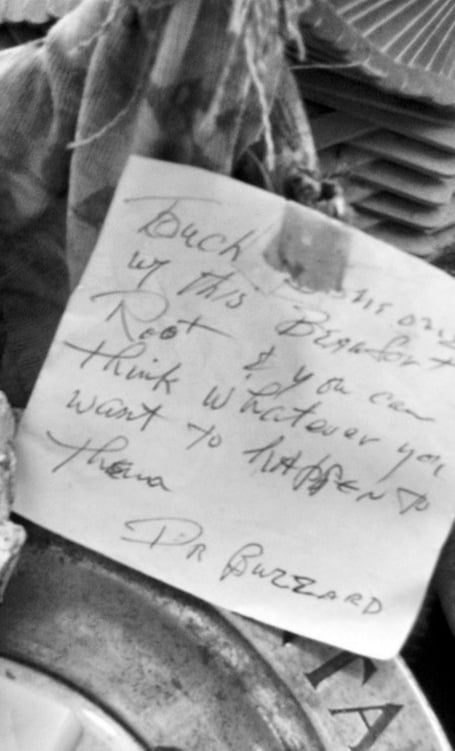 Complementing this narrative is a photograph titled “Dr. Buzzard’s Magical Root” by Brandon Coffey (1989), showcasing a handwritten root recipe from Dr. Buzzard himself. This image serves as a tangible reminder of the traditional knowledge passed down through generations, where tea and herbal mixtures were integral to spiritual and physical well-being.