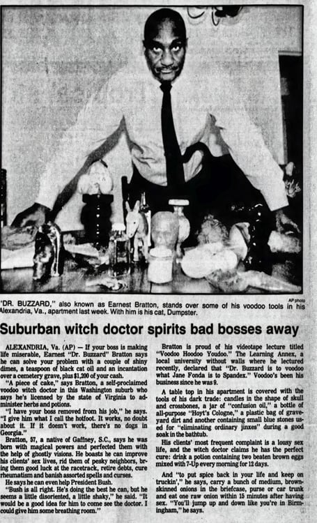 Further enriching this is another newspaper article from 1989, detailing the life and practices of Dr. Buzzard. This piece provides additional context and insight into his spiritual and healing practices, reinforcing his significant role in the community.